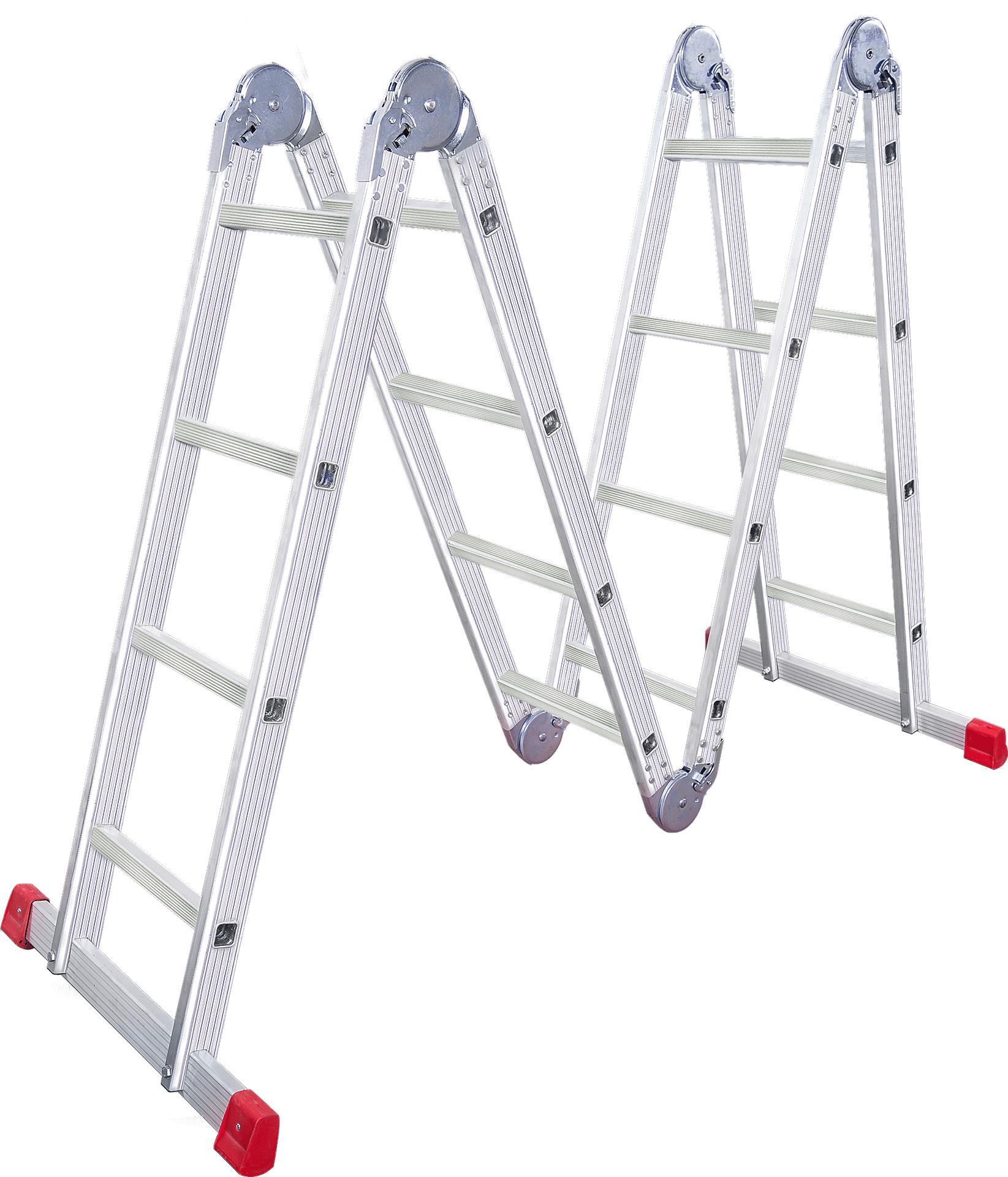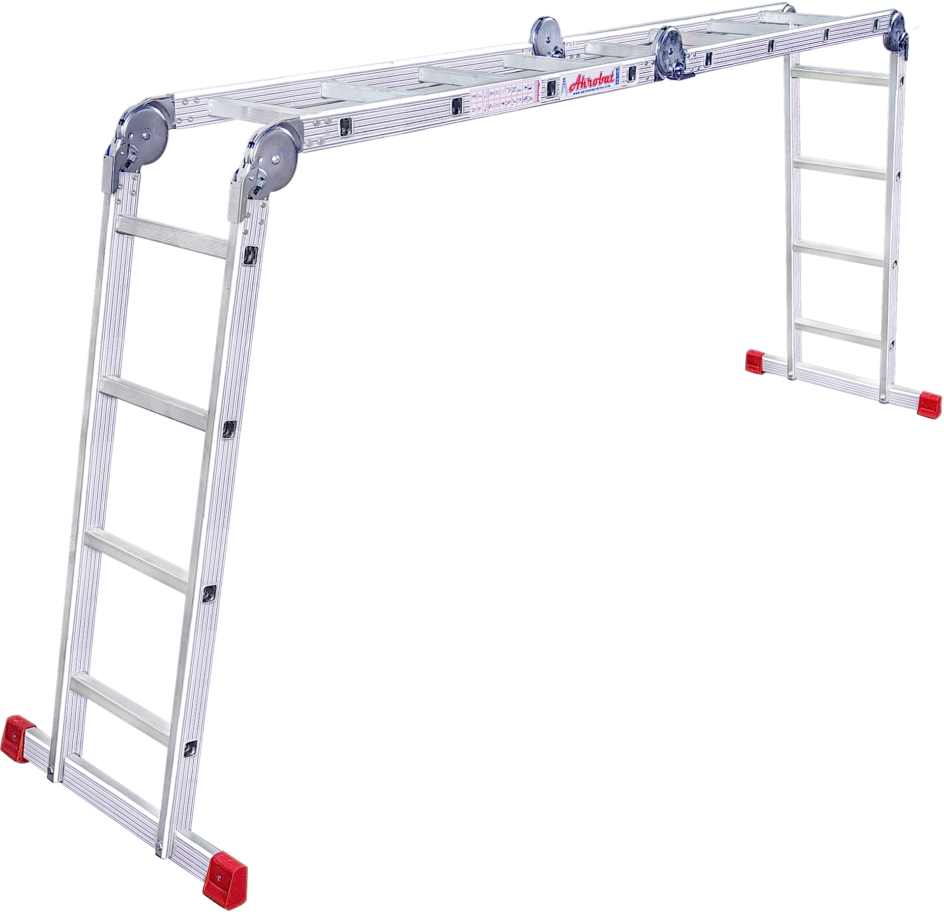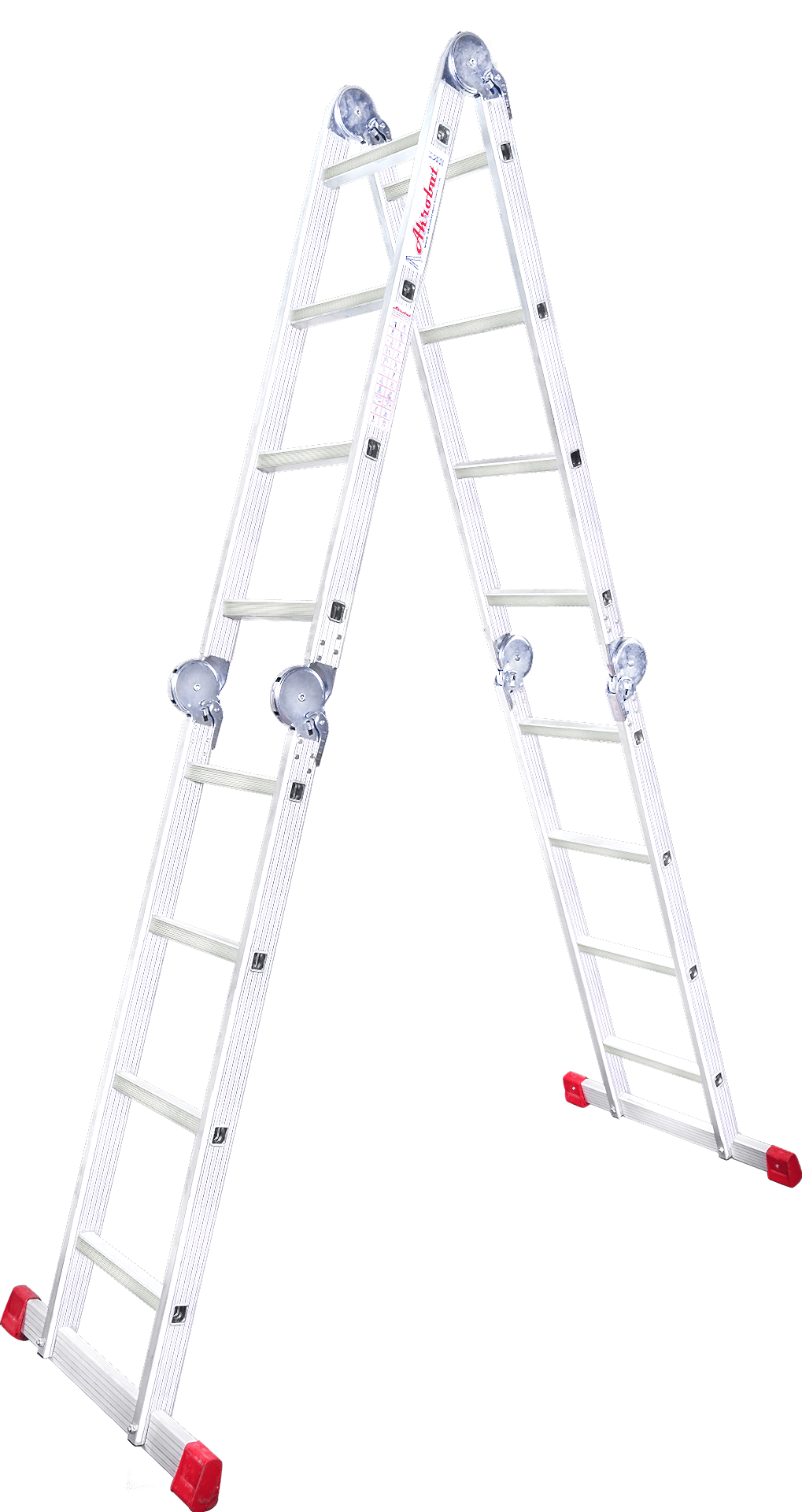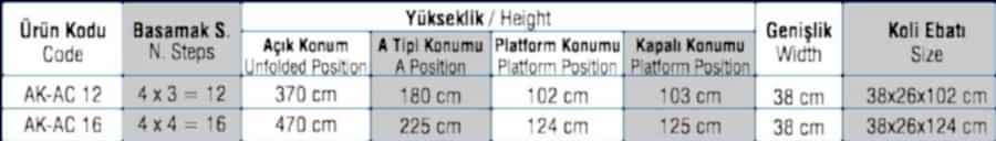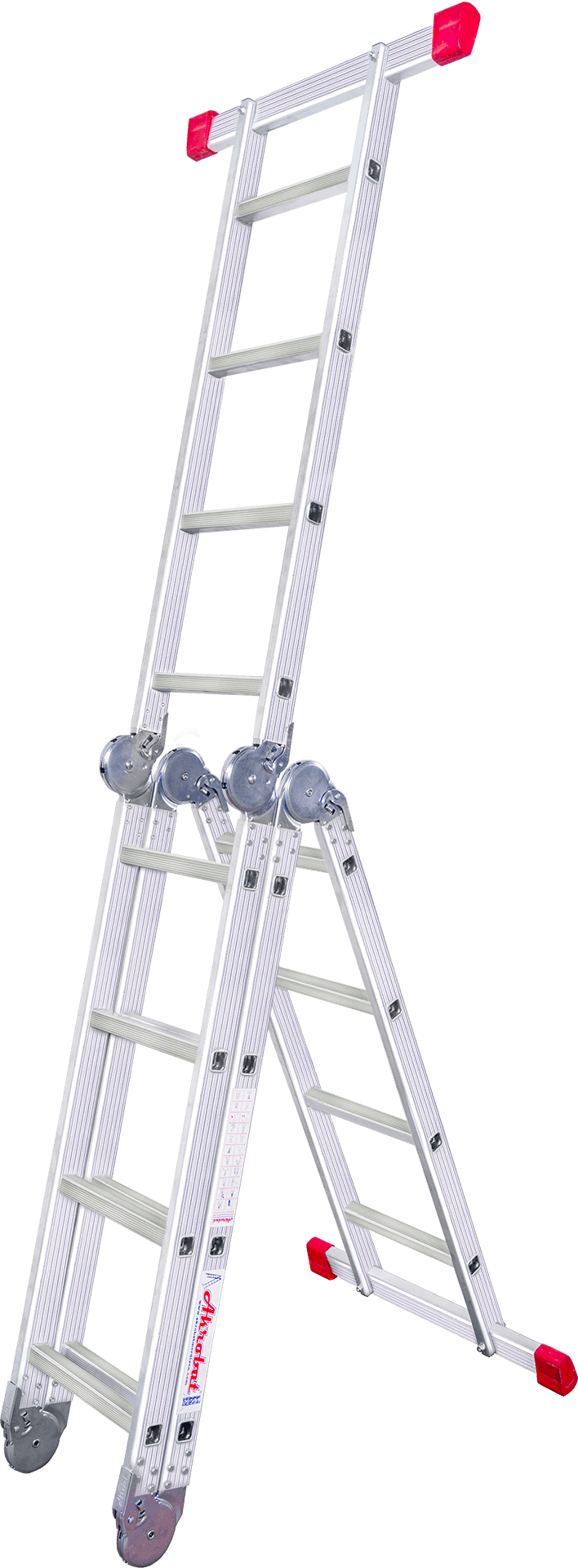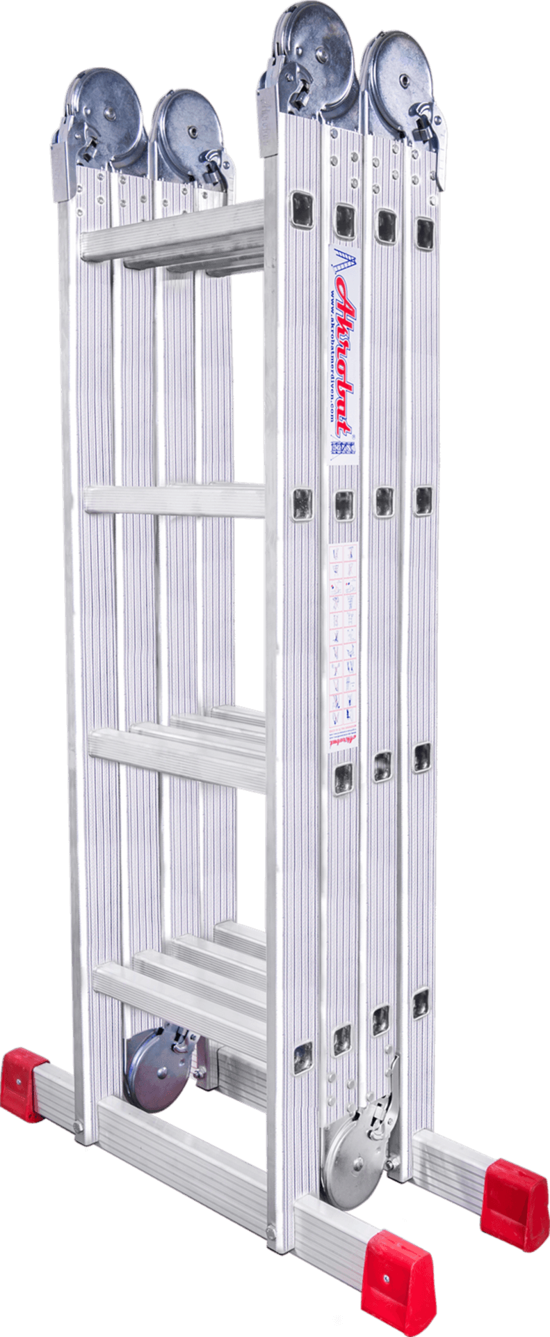 A tipi konumunda herhangi bir yere dayamaya gerek duyulmadan kullanabilindikleri gibi, tek parça dayamalı olarak da Akrobat Merdivenleri kullanabilirsiniz. Aynı zamanda kolaylıkla platform şekline de gelebilirler.